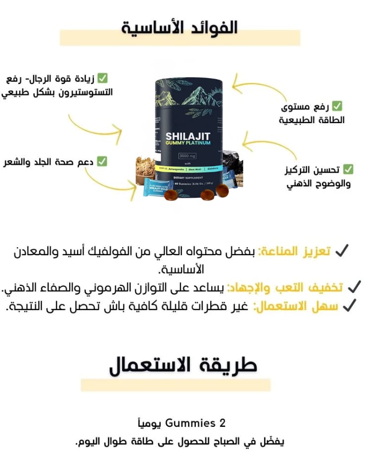 علكة الشيلَجيت تخلي الواحد ناشط، وكل ما أحتاج طاقة، ألقاها حل سريع. ما أقدر أستغني عنها.